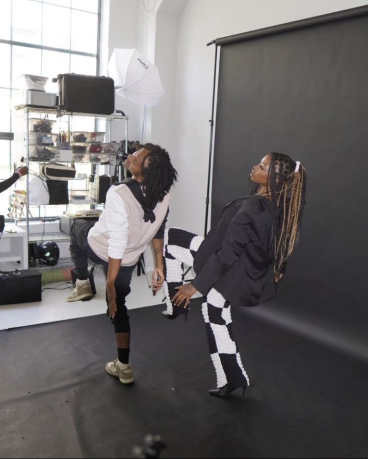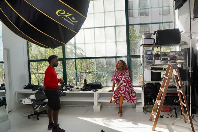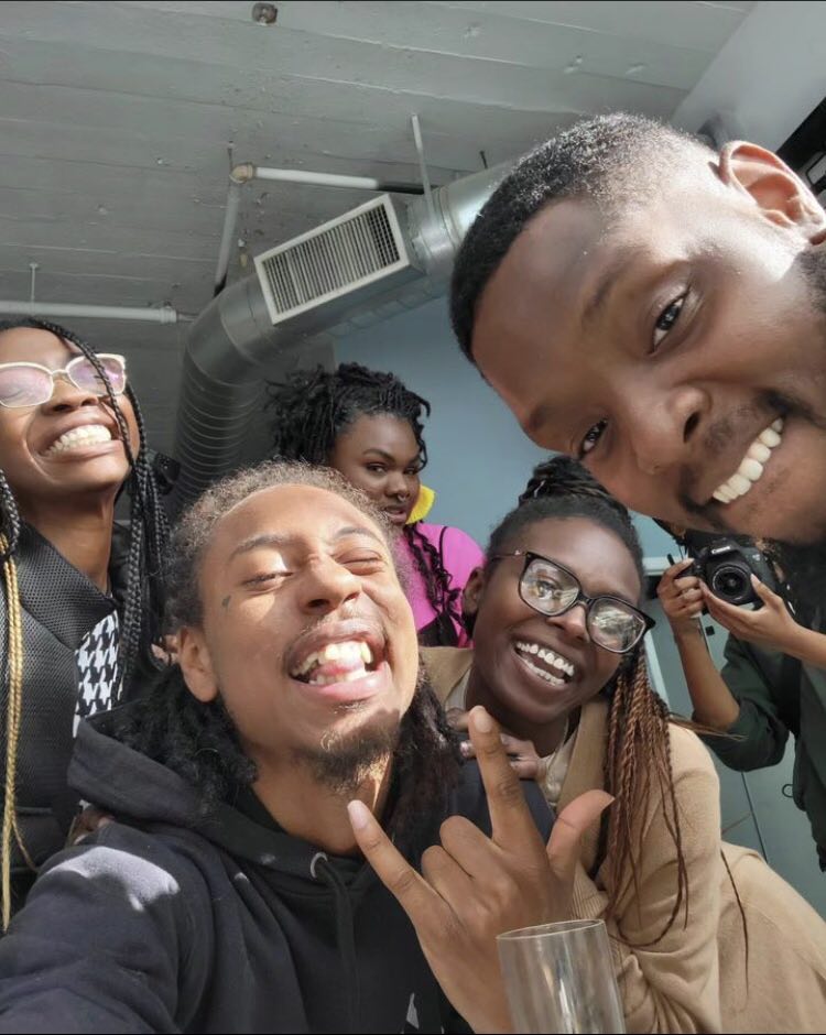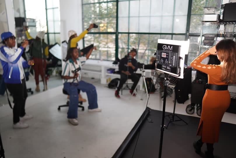 Top left to right: model at Kamera House, photo credit: IG: @creativelydes_. Creative director/photographer giving posing instructions to model, photo credit: IG: @thatboyart_. Middle left to right: models at Kamera House, photo credits: IG: @taz.shot.it @insposhoots @chassbash. Bottom: Kevin with fellow creatives, photo credit: IG: @thatboyart_