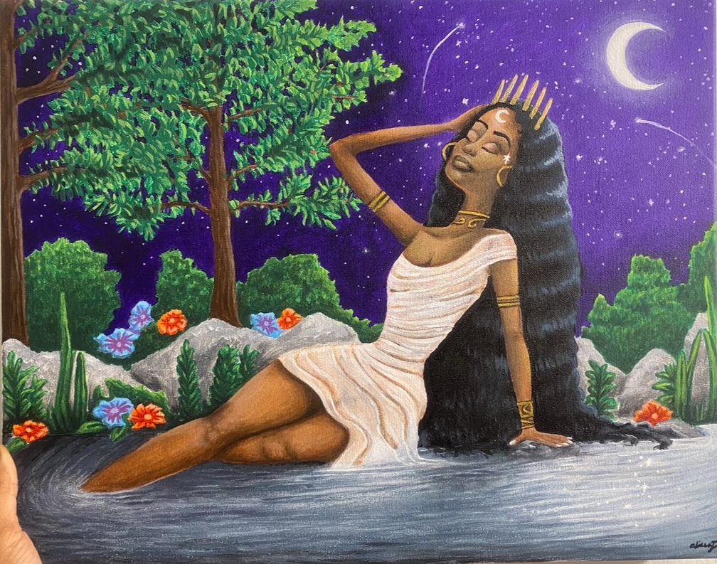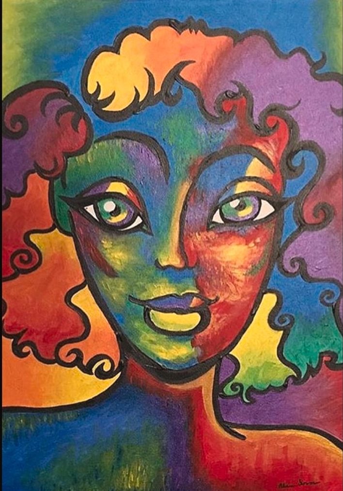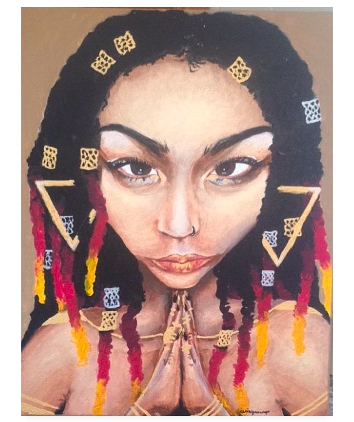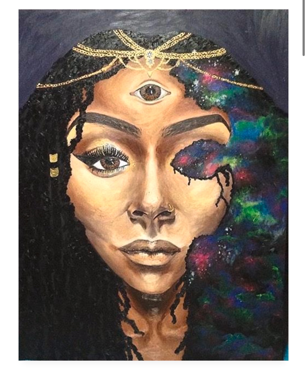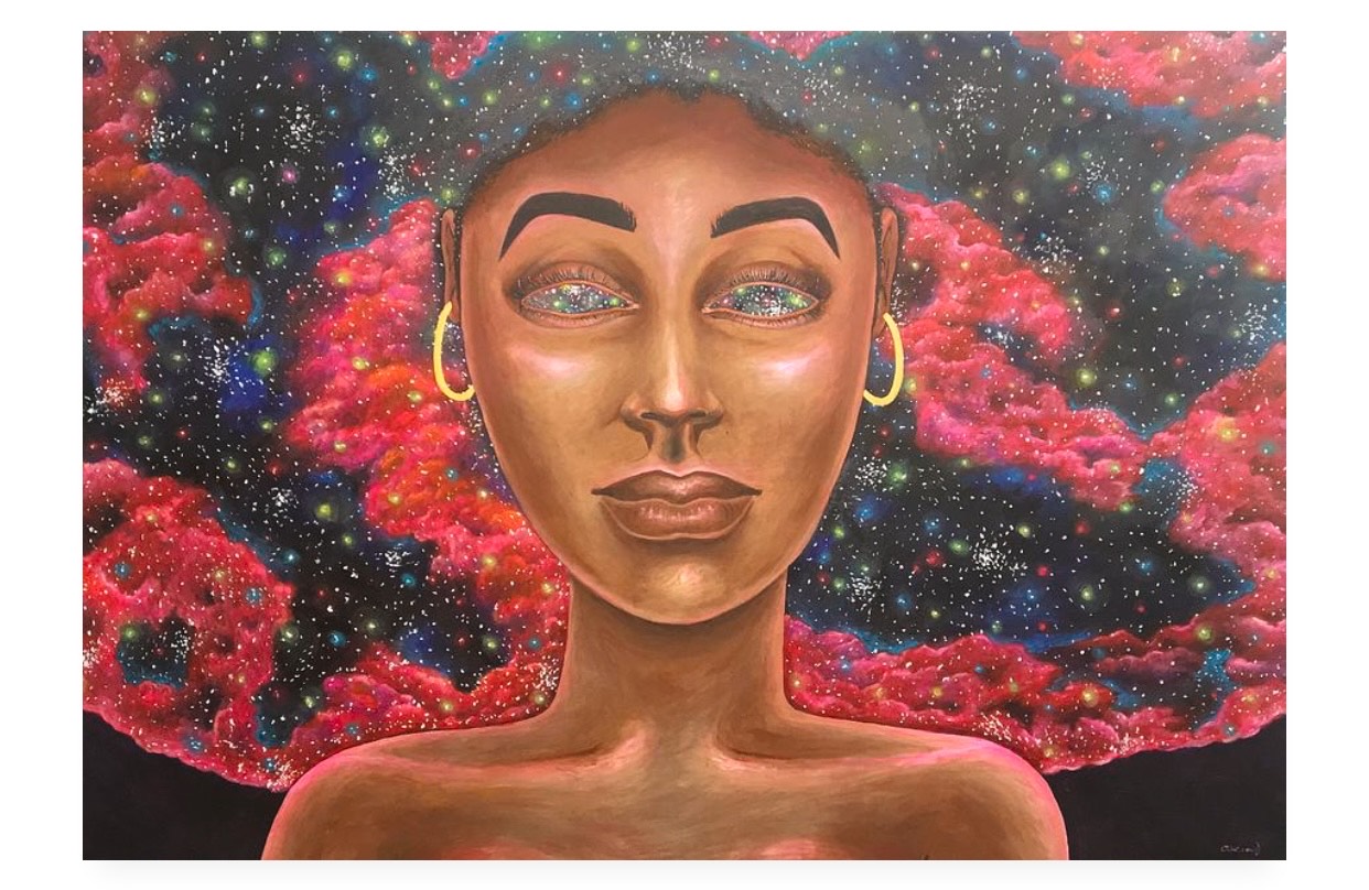 While raised by an inspiring mother, Simone stayed encouraged and engaged in the arts. “She’s my biggest inspiration. The strongest and sweetest person I know.” Developing a deeper passion for painting and photography, the STLCC Florissant Valley alum made visual artwork her field of focus. Alicea specializes in oil and acrylic, and commissioned portrait paintings for clients. Her personal catalog tends to be vivid canvases of “inner and higher” introspection. “What I do is take the portraits of people and put them in a creative scene.”, explains the artist. “It can be anywhere, like the ocean, space, flowers, or anything that I feel I should add.”