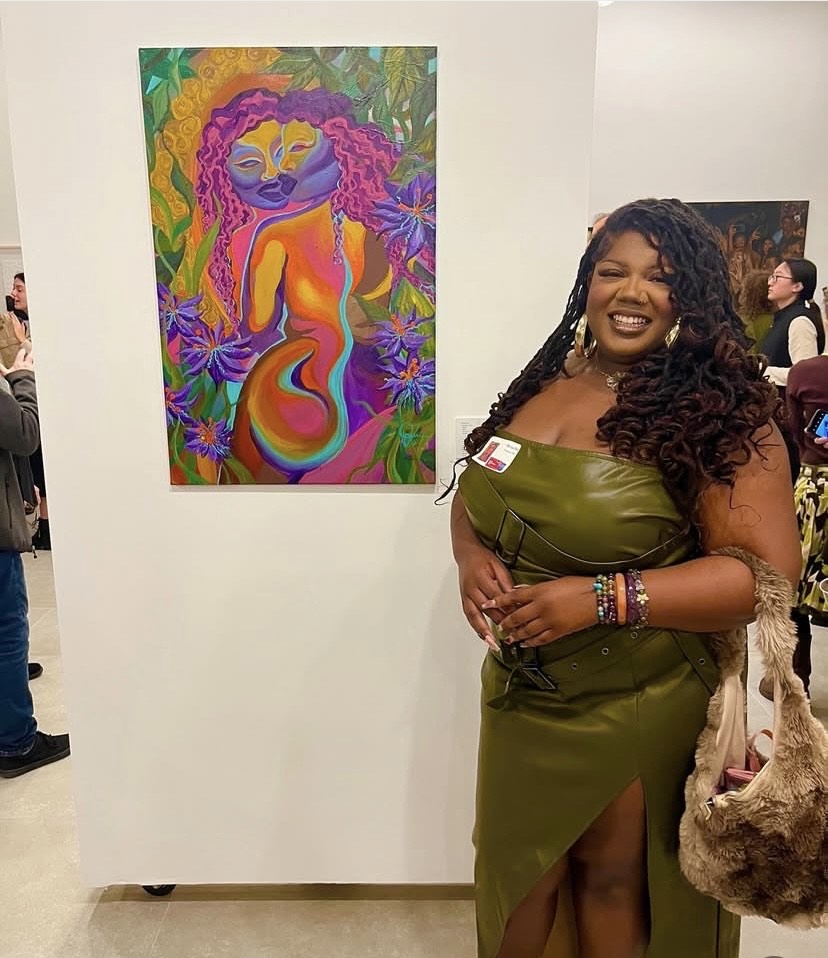 “Growing up, my mother’s music taste also inspired me a lot.”, shares Ngozi. “She was into a lot of neo-soul. Like Lenny Kravitz, Erykah Badu, and Fugees. Just seeing and hearing that black imagery and black joy, that was really influential. The colors the melanin and just the overall feeling of empowerment.” After high school, the Hazelwood West alum studied at Missouri State University (MSU) and graduated with her degree in Fine Arts from UMSL in St. Louis.